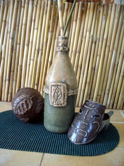 My own design Paper Mache rustic mask, Bottle and decorative ball.