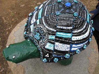 Wow, I love the painting and decoration on this adorable turtle! And what a lovely idea- a turtle bank with a removable shell :)