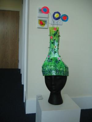 HAT MADE WITH PAPIER MACHE. THIS HAT IS PART OF A COLECCTION OF HATS MADE AS A PROTEST OF THE GLOBAL WARMING.