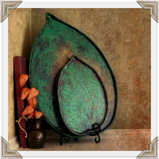 Trays created using the strip method (newspaper on cardboard form). Finished with acrylic and glaze for water resistance. Big tray: 19in l 13.25in w x .75in d (29cm x 19.5cm x 2cm) Small tray: 11.25in L 7.75in W x .75in (29cm x 19.5cm x 2cm)