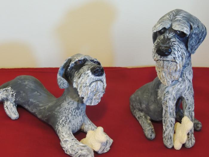 These Schnauzers were commissioned work, and 2 poses were needed. They were lots of fun to make and a challenge to do the feathering!