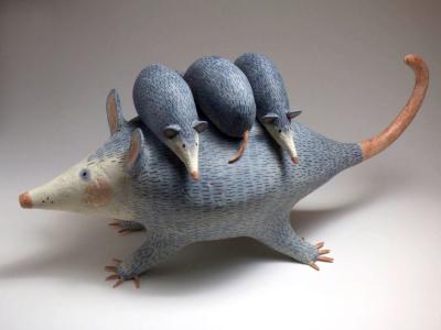 8-1/2" x 20-1/2" x 7" paper mache, acrylics, oils, wood