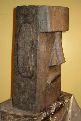 Use plenty of glue to hold the cardboard structure together, its actually very strong. I think by using so much cardboard I didn't need to cover the whole thing in paper. Also when putting on the glue soaked paper I had a small space heater fan blowing on it to dry it out, and a sponge to wipe away the excess. This stuff takes a long time to dry, but with the heater fan it drys fairly quickly. You may want to use more paper and glue and cover the entire thing if you want more strength. I experimented on the other side by not covering the styrofoam ear with paper at all. I just covered it in joint compound, and later with a coat of white glue. I managed to make it look exactly like the other side, and it's held up very well even through the parade.