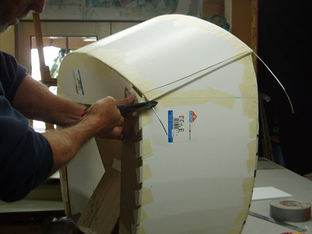 - Shaping scored and wired foam core 'lid piece'.